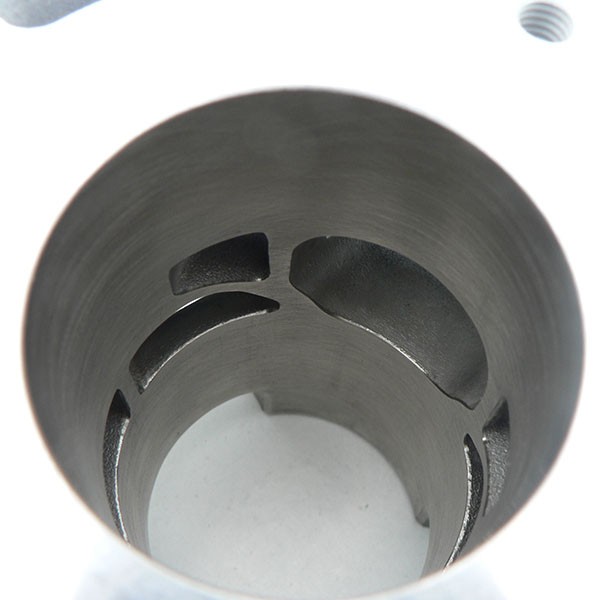 Entièrement modélisé en CAO 3D, le cylindre voit sa chambre d'eau faire le tour tous les noyaux de transferts et d'échappement, avec des épaisseurs constantes, à même de garantir une grande stabilité dimensionnelle du cylindre, due à un refroidissement optimisé.