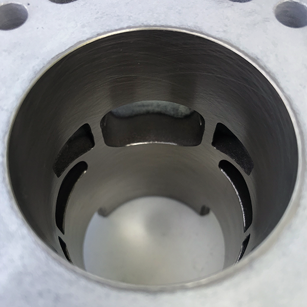 Entièrement modélisé en CAO 3D, le cylindre voit sa chambre d'eau faire le tour tous les noyaux de transferts et d'échappement, avec des épaisseurs constantes, à même de garantir une grande stabilité dimensionnelle du cylindre, due à un refroidissement optimisé.